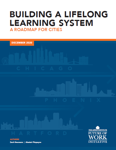 Cities are well positioned to build lifelong learning systems that can help workers pursue education and training throughout their careers. With the power to convene and connect stakeholders, including employers and training providers, highlight skill and job needs, and conduct evaluations of existing programs, city governments can address many of the challenges outlined in this report. To date, however, cities have not played a prominent role in helping adult residents access or understand what education and training options are available. This blog post is an excerpt from the Future of Work Initiative’s report, Building A Lifelong Learning System: A Roadmap for Cities, and is part of a series of blogs highlighting the recommendations made in the report—the concrete steps mayors and city leaders can take to build integrated and effective lifelong learning systems. The Future of Work Initiative is grateful to the Cognizant U.S. Foundation for providing financial support for this project and publication.