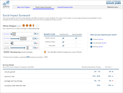 At the conference, I joined a panel discussion – Good Jobs ARE Good Investments – organized by Investor Circles’ Renata Hron Gomez with presentations also from Ed Brisco, Founder and Co-Director of Impact Charitable, and Mary Jo Cook, President and CEO of Pacific Community Ventures. With more than 60 audience members, this panel presented a great opportunity for me to describe the pathway of the Good Companies/Good Jobs Initiative’s work from our original research on exemplary firms to our more recent efforts exploring ways to foment ready, willing, and able businesses to become more like these job quality pioneers. It also allowed me to present the Good Companies/Good Jobs Software System. Developed with our for-profit partner Working Metrics, this cloud-based approach minimizes data reporting burdens on firms while also facilitating analytics, benchmarking, and scoring on key outcomes for frontline workers. Firms are benchmarked on turnover/retention, growth in workers’ earnings, and net job creation/losses. We also assess access to and quality of benefits such as health insurance, paid leave, and retirement. Recognizing this tool’s potential to simplify how businesses assess the outcomes of job quality innovations for their frontline workers, audience members demonstrated extensive interest following the panel. SOCAP staff eventually had to remove from the meeting room to set up the next panel. Good jobs are a good investment, and this tool can make it easier for practitioners to demonstrate this to business leaders.