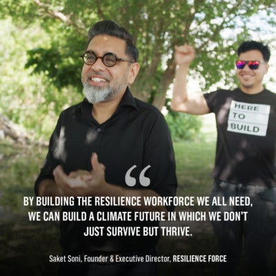 As a labor organizer, Saket has been a lifelong advocate for worker’s rights at the grassroots and national level, founding Resilience Force in 2017 to support the thousands of mostly immigrant workers who travel to rebuild in the wake of natural disasters. Through training and advocacy, Resilience Force is helping to create good jobs — including fair pay, good benefits, and safe working conditions — while preparing local communities for the worsening effects of climate change. And as a McNulty Prize winner, Saket will receive $150,000 to expand this critical work.