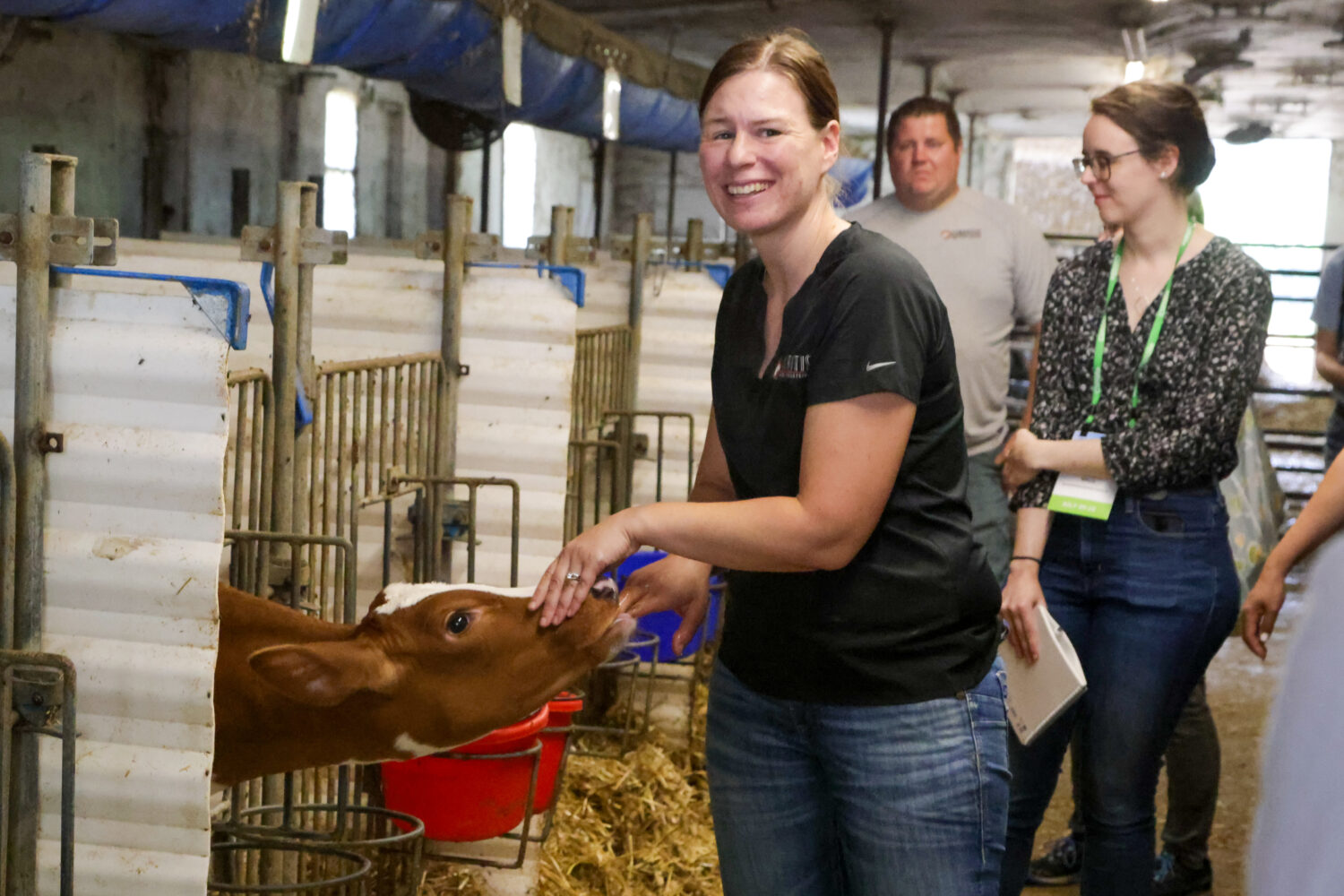 What makes the Lenkaitis farm remarkable is not only its resilience – surviving as one of just three remaining dairy farms in Kane County – but also its embrace of cutting-edge technology. Attendees toured a modern barn equipped with robotic milking machines and an automated manure management system, and saw cow activity collars that track animal health. Its innovative technologies are reflective of the farm’s commitment to environmental responsibility, including stormwater systems to protect local waterways.