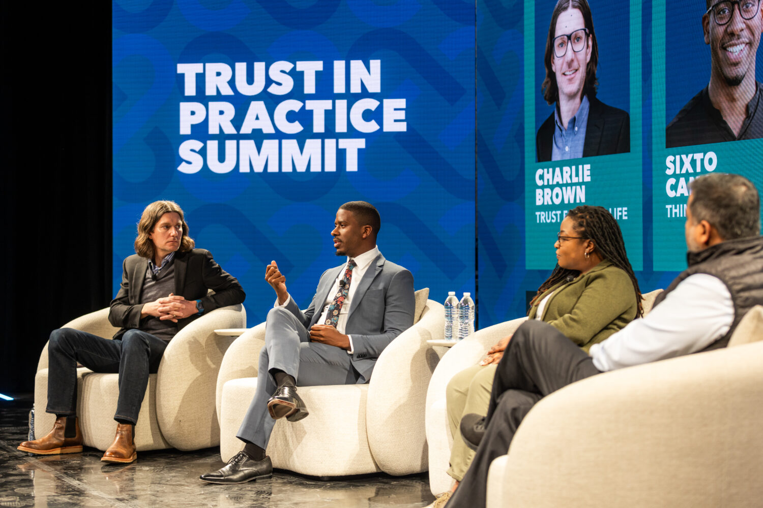 A discussion panel featuring local leaders — Charlie Brown, Executive Director of Trust for Civic Life; Sixto Cancel, Founder of Think Of Us; and Orriel Richardson, Head of Policy & Advocacy at Morgan Health, JPMorgan Chase — expanded on the lessons and successes of building trust through grassroots efforts and cross-sector partnerships rooted in identifying and collaborating on shared problems.