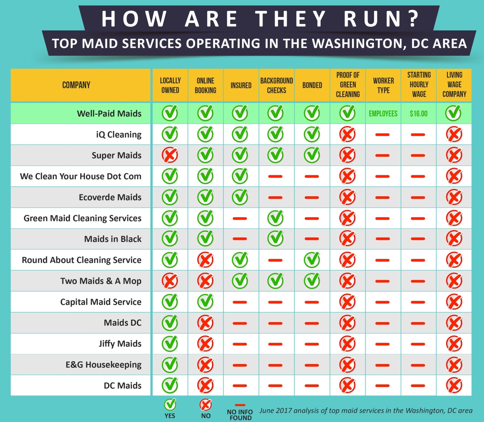 Well-Paid Maids is Seyedian’s freshly-minted home cleaning service company based in Washington, DC. One key differentiator for the firm is its guarantee to pay workers $16.00 per hour—well above the national minimum wage of $7.25 per hour and the DC standard of $12.50 per hour.