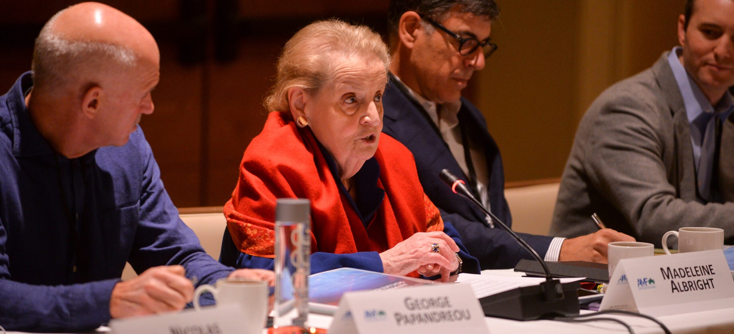 A few of the ministers released a statement in December 2016 about the situation in Aleppo in Der Tagesspiegel and in The Times. They also spoke to Bloomberg, which published a piece on the future of work that drew heavily on insights gleaned from AMF discussions.