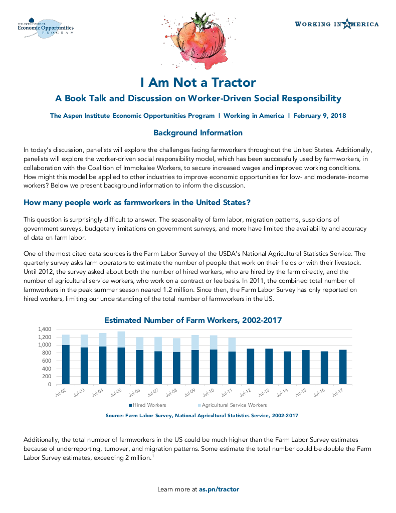 This event is part of the Working in America series, an ongoing discussion series hosted by the Aspen Institute Economic Opportunities Program that highlights an array of critical issues affecting low- and moderate-income workers in the United States and ideas for improving and expanding economic opportunities for working people. For more information, visit as.pn/workinginamerica.