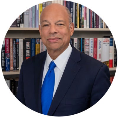 Jeh Johnson is the former Secretary of Homeland Security. Prior to that he was General Counsel of the Department of Defense, General Counsel of the Department of the Air Force, and an Assistant United States Attorney in the Southern District of New York. Secretary Johnson is now co-chair of the Board of Trustees of Columbia University, and on the board of directors of MetLife and the 9/11 Memorial and Museum. For much of his career, Johnson was a trial attorney in private practice and a Fellow in the American College of Trial Lawyers. Johnson is a regular commentator on NBC’s Meet The Press, MSNBC’s Morning Joe, FOX’s Fox & Friends, CNN and other news networks. Johnson is a graduate of Morehouse College and Columbia Law School and the recipient of 13 honorary degrees. Johnson has debated numerous times at the Oxford and Cambridge Unions in England, and an honorary life member of the Cambridge Union.