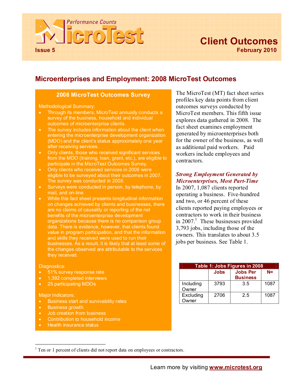 Microenterprises and Employment: 2008 MicroTest Outcomes