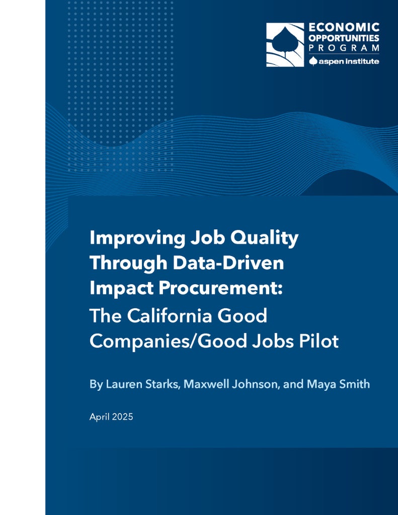 Lauren Starks is the director of Good Companies/Good Jobs, an initiative of the Aspen Institute Economic Opportunities Program. The Good Companies/Good Jobs Initiative focuses on building the incentives for companies to pursue a shared success model, in which workers thrive while contributing to the success of a healthy business, and on advancing actionable strategies needed to ensure more jobs are good jobs.