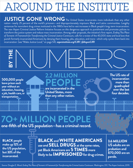 The Aspen Institute’s Criminal Justice Reform Initiative’s mission is to amplify and uplift policy and systems changes aimed at reducing mass incarceration within state and local jurisdictions through addressing the entire criminal justice continuum.
