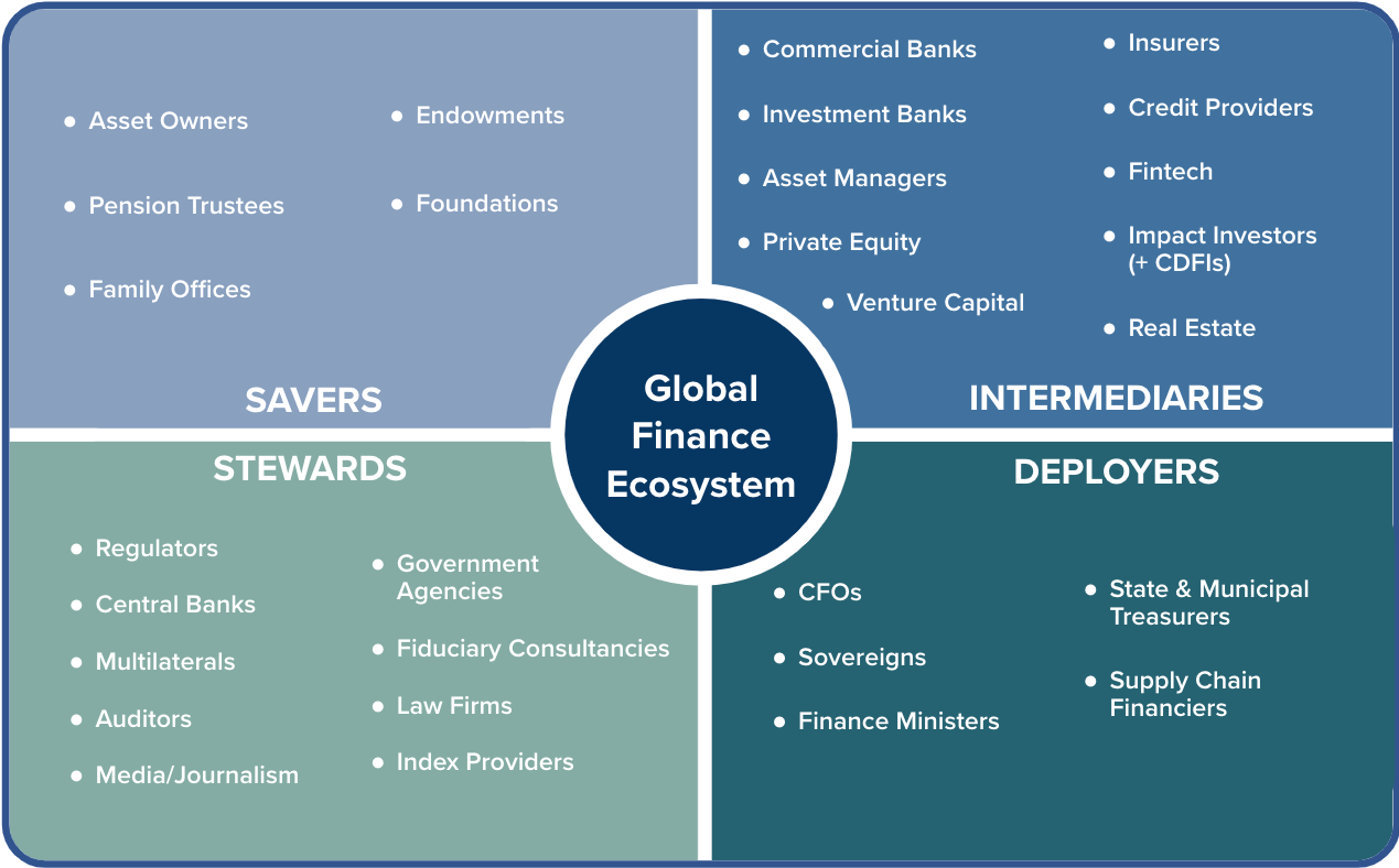From institutional investors and asset managers to bankers and asset owners, fintech founders and impact investors to CFOs and regulators, FLF Fellows represent a diverse cross-section of savers, stewards, deployers, and intermediaries of capital across the Global Finance Ecosystem:
