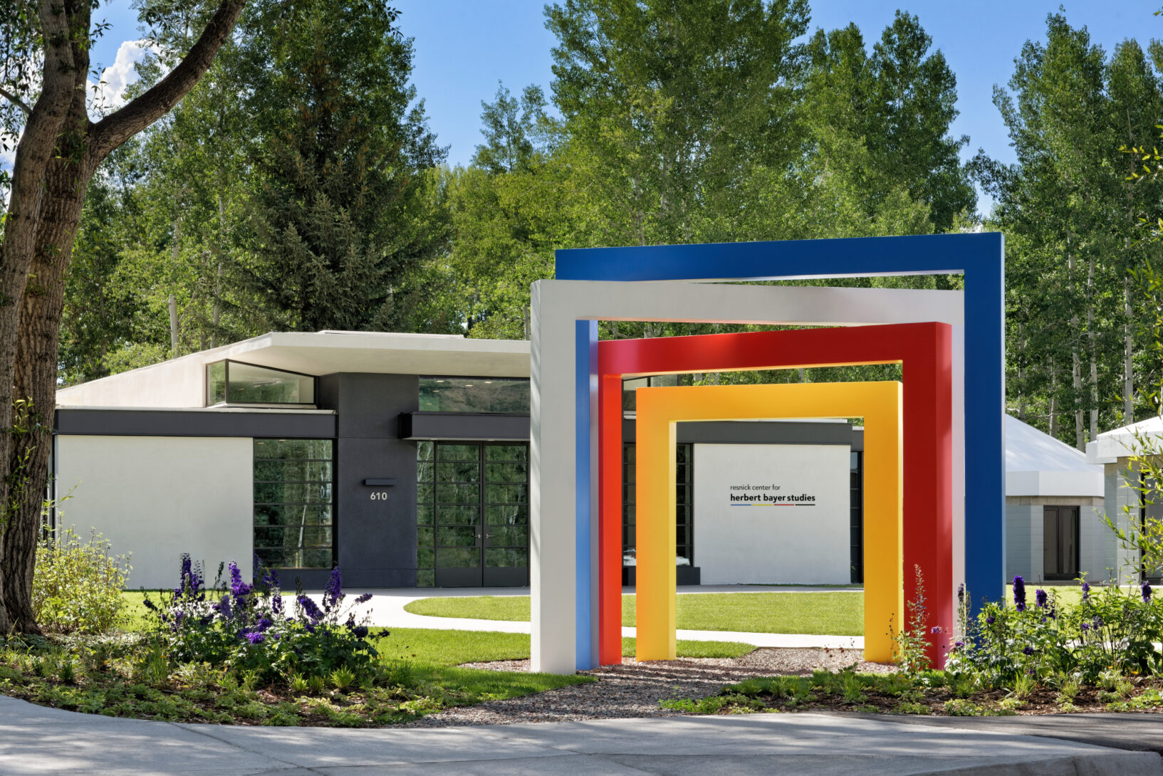The Resnick Center for Herbert Bayer Studies preserves and honors the art of Herbert Bayer, who designed the iconic campus of the Aspen Institute and whose multifaceted work represents the fullest expression of the Bauhaus movement in America. The Center celebrates the interdisciplinary nature of Bayerʼs legacy by promoting understanding of his art and design through its collection, exhibitions, public programming, community engagement, research, and educational initiatives.