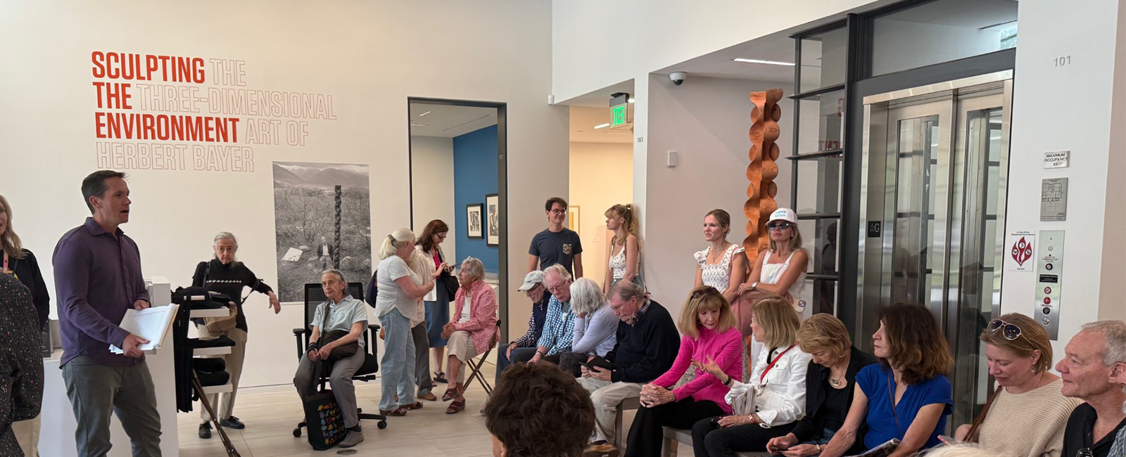 The Bayer Center preserves the art and legacy of Herbert Bayer (1900–1985), an influential modern artist and designer who studied and taught at the Bauhaus before emigrating from Germany to the United States in 1938. After relocating to Colorado in 1946, Bayer helped lead the postwar revitalization of the city of Aspen, shaped the early artistic and programmatic vision of the Aspen Institute, and designed the historic Aspen Meadows campus between 1953 and 1973.