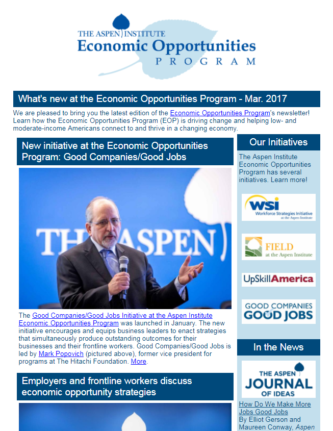 The latest news & announcements from the Aspen Institute Economic Opportunities Program.