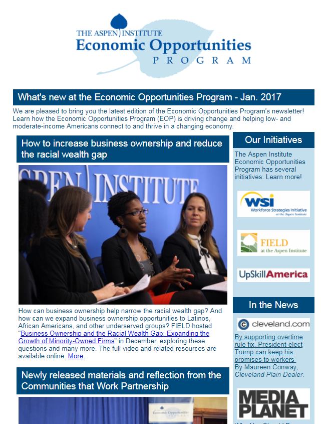 The latest news & announcements from the Aspen Institute Economic Opportunities Program.