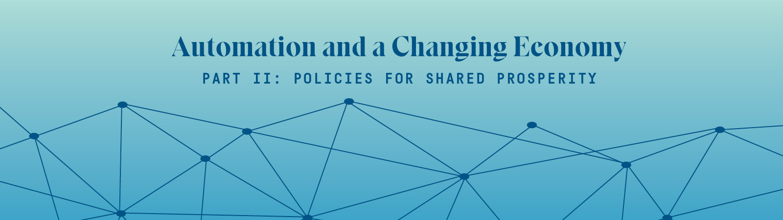 Automation and a Changing Economy is divided into two sections. Part II, Policies for Shared Prosperity, outlines a program to address automation’s challenges and opportunities.Introduction