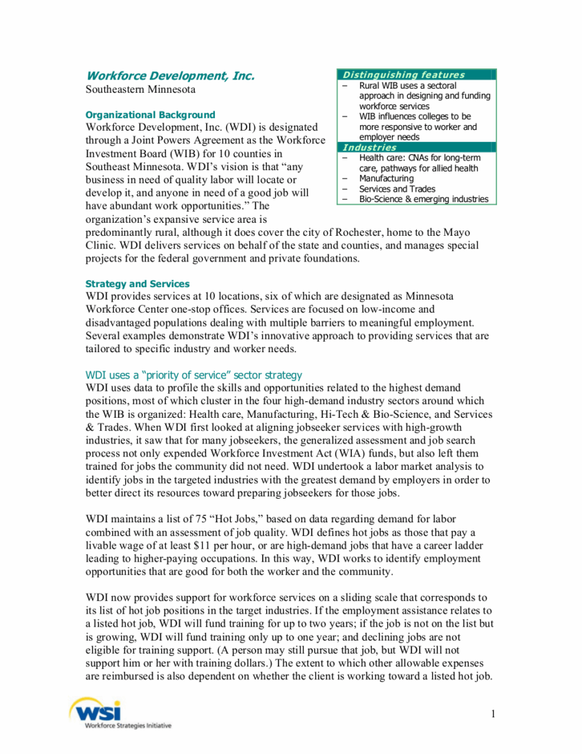 This document is a profile of a sector initiative and provides detailed description of the initiative that may include  information about program design, funding, worker outcomes, partners and much more.