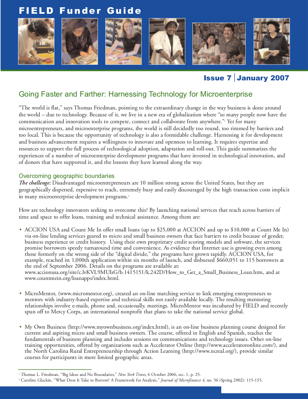 Going Faster and Farther: Harnessing Technology for Microenterprise
