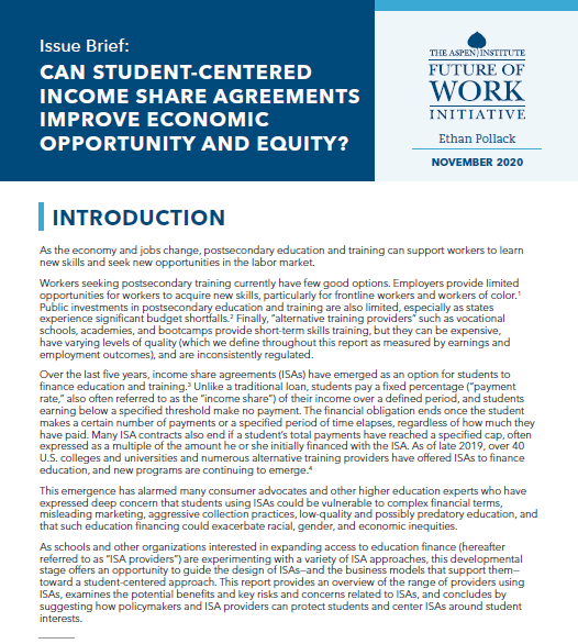 This issue brief explores how ISAs could be designed and operated to improve economic opportunity for American workers.
