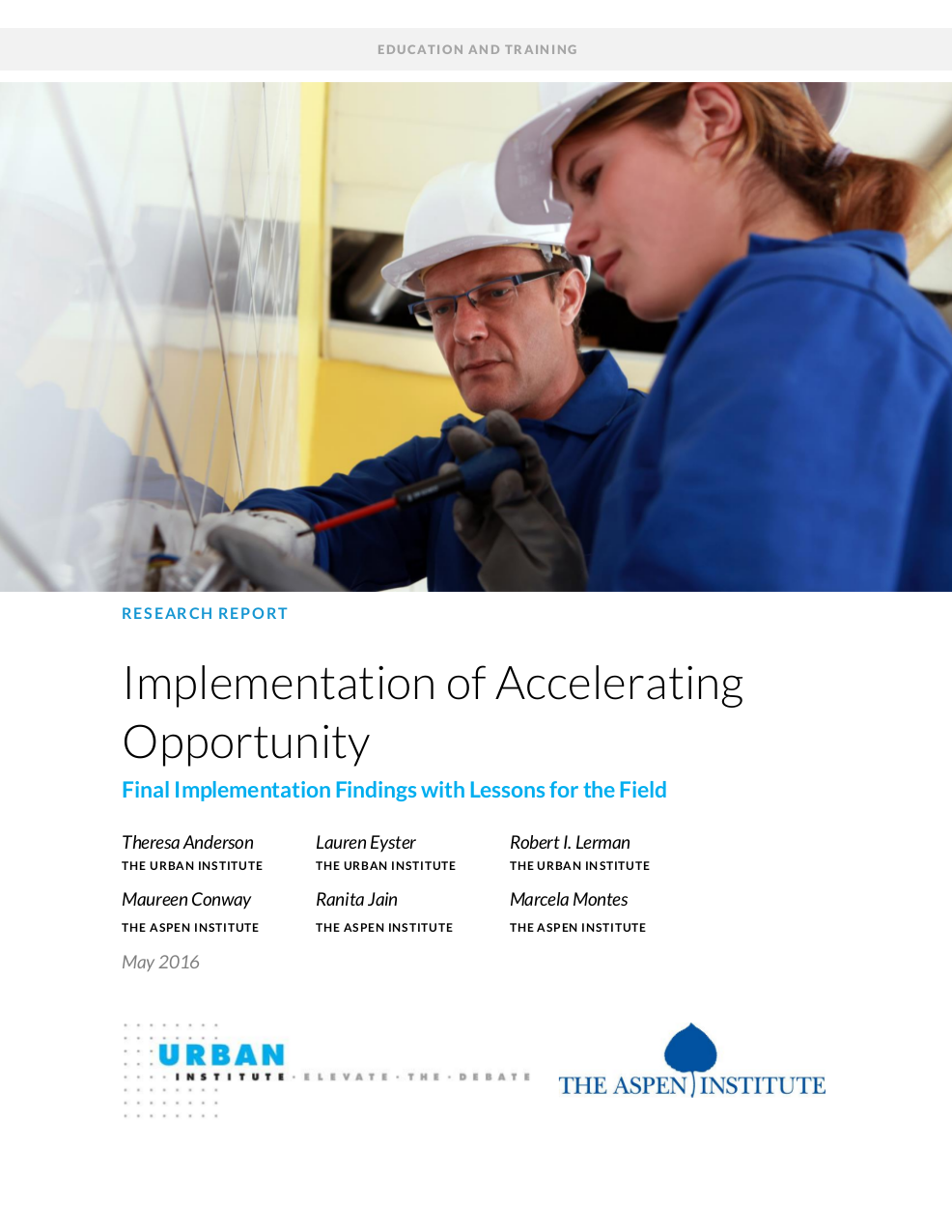 Accelerating Opportunity aims to increase the ability of students with low basic skills to earn valued occupational credentials, obtain a well-paying job, and sustain a rewarding career.