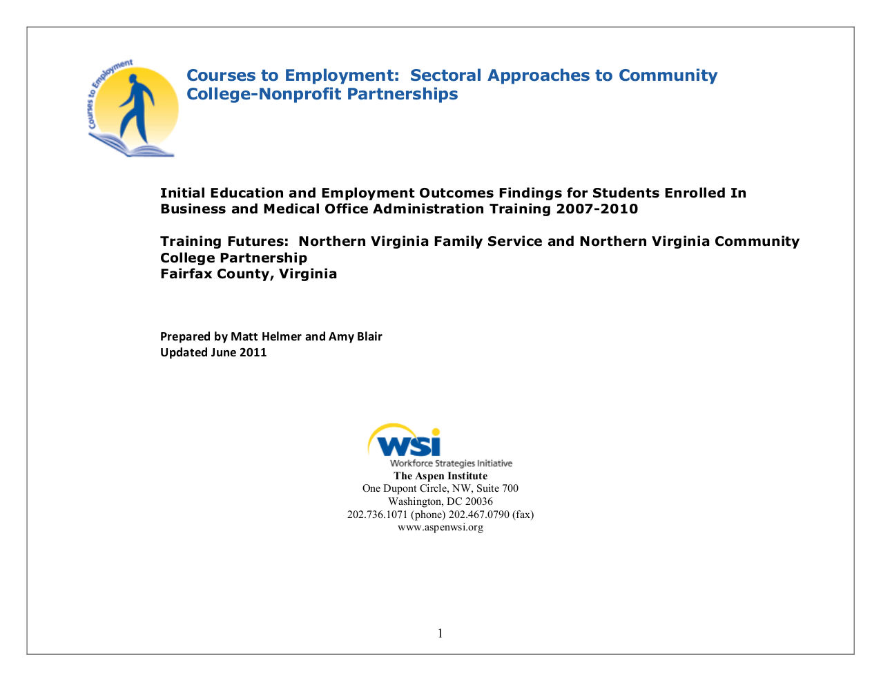 This report details the initial findings from longitudinal research on the education and employment outcomes of students who enrolled in Northern Virginia Family Service’s Training Futures (business and medical office administration training) program between 2007 and 2010.