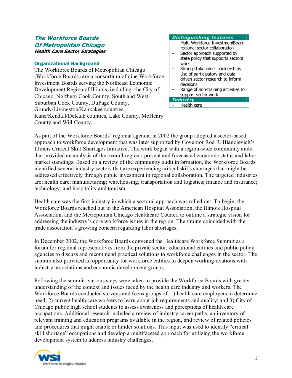 Workforce Boards of Metropolitan Chicago – Health Care Sector Strategies (Northeast Economic Development Region of Illinois)